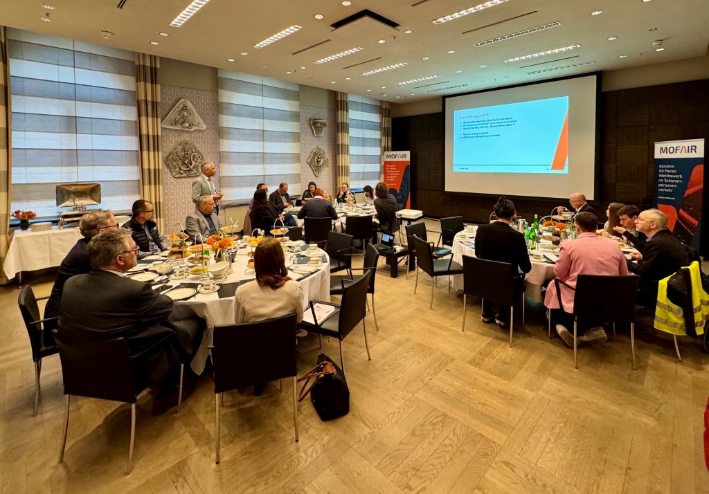 Wieso diese Annahme kein Konzept für ein attraktives Eisenbahnsystem sein kann, wo genau die Risiken liegen, welche Folgen (für die Fahrgäste!) entstehen könnten und welche Maßnahmen deutlich sinnvoller wären, hat mofair am 22. April 2026 im Rahmen eines parlamentarischen Frühstücks vorgestellt. Die Abgeordneten des Deutschen Bundestags und Ihre Mitarbeiterinnen und Mitarbeiter konnten darüber hinaus ein Update zur laufenden Diskussion über eine Trassenpreisreform und den Folgen des EuGH-Urteils zur sog. „Trassenpreisbremse“ und einer denkbaren übergreifenden Lösung, die beide Thematiken verknüpft, mitnehmen.